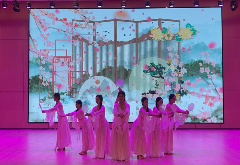 此外,爵士舞社团与航空工程学院合作的《爵士舞串烧》,动感的节奏搭配酷炫舞步,瞬间点燃现场气氛;校园 “好声音” 冠军的独唱,用天籁之音唱响青春旋律;学生礼仪社团和健身社团模特带来的《银河绮梦》时装走秀,尽显时尚魅力。健康管理学院的情景演绎《一切为了孩子》,生动呈现了幼教工作者的专业与责任;非遗文创社团的《岳州扇韵・匠心传颂》,带观众领略深厚的文化底蕴;武术社团的《惊鸿掠影》、中国舞社团的《鸳鸯戏》,分别以刚健与柔美,展现传统艺术的独特韵味。智能工程学院将萌酷机械狗与少年热舞相结合,《APT》的未来感与《危险派对》的野性碰撞出别样火花;学生英语社团深情演绎的《Love Story》,让青春与甜蜜在旋律中流淌。
