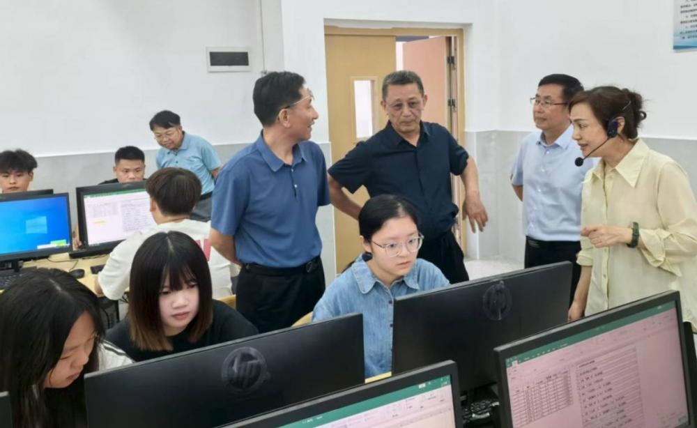 校长张建,党委副书记、常务副校长张文兵,副校长万忠保等领导躬身一线,筑牢实训“保障线”。他们的身影频频出现在热浪翻腾的实训车间与教室。“设备运行如何?”“防暑措施是否到位?”“学生状态怎样?”每一次细致询问与督导,都是对教学质量与师生安全的郑重承诺。后勤专班化身“清凉卫士”,24小时保水保电,食堂精心调剂膳食;教务处、学工处专人全天候值守;各二级学院院长更是扎根一线,与师生并肩作战,有的领导给一线送来清甜西瓜,有的备好了解暑凉茶,点滴关怀织就坚实后盾。