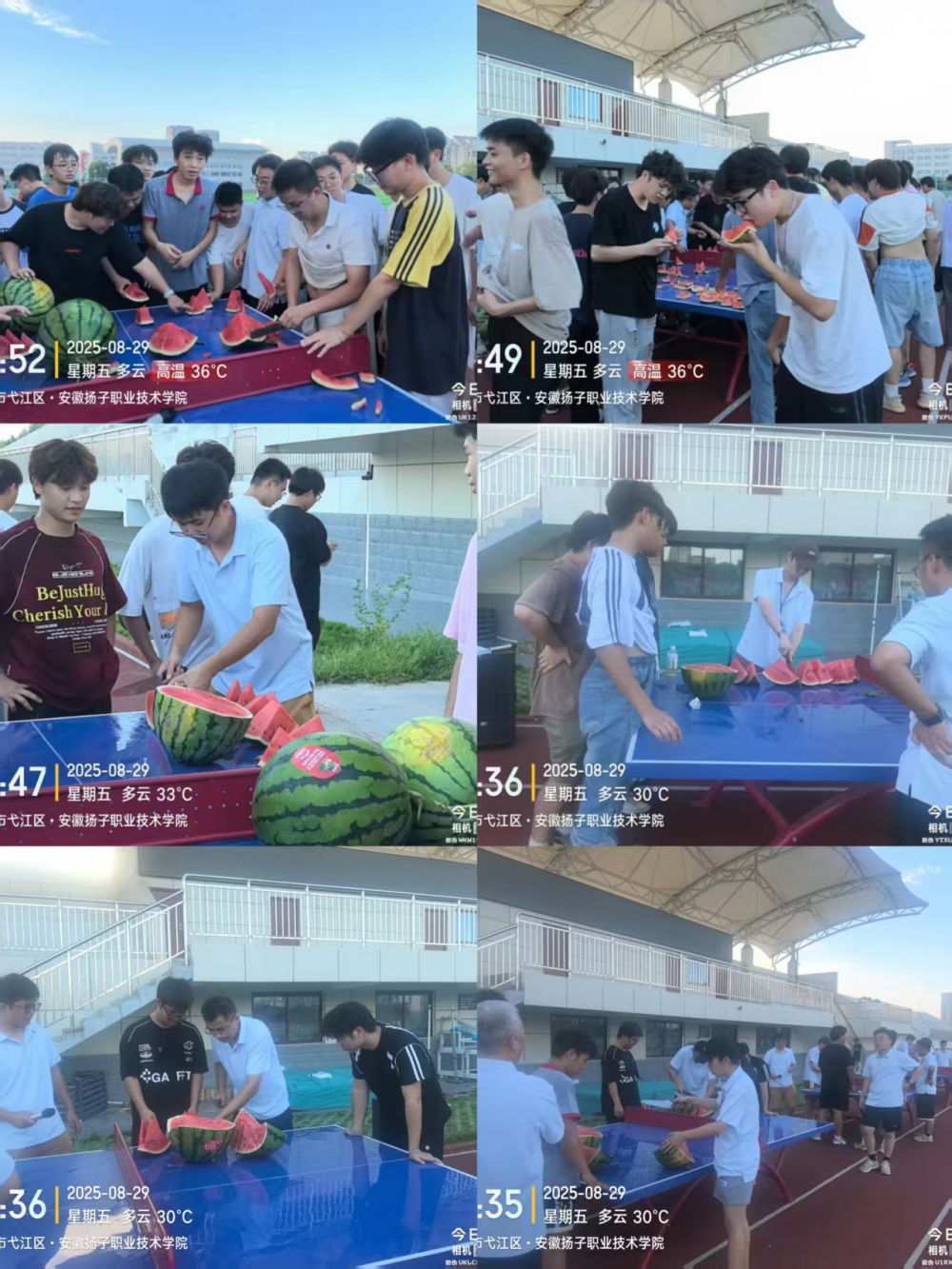 8月29日,在得知学生提前完成体能训练任务并获得奇瑞领导高度认可后,吴敏副院长带领学生科长钟广云及全体带队老师特意采购了清甜多汁的西瓜,在操场组织起一场温馨的“西瓜分享会”。夕阳下,学子们围坐在一起,手捧西瓜畅谈训练心得,欢声笑语驱散了连日的疲惫,也让师生之间、同学之间的距离进一步拉近,团队凝聚力在轻松的氛围中悄然增强。