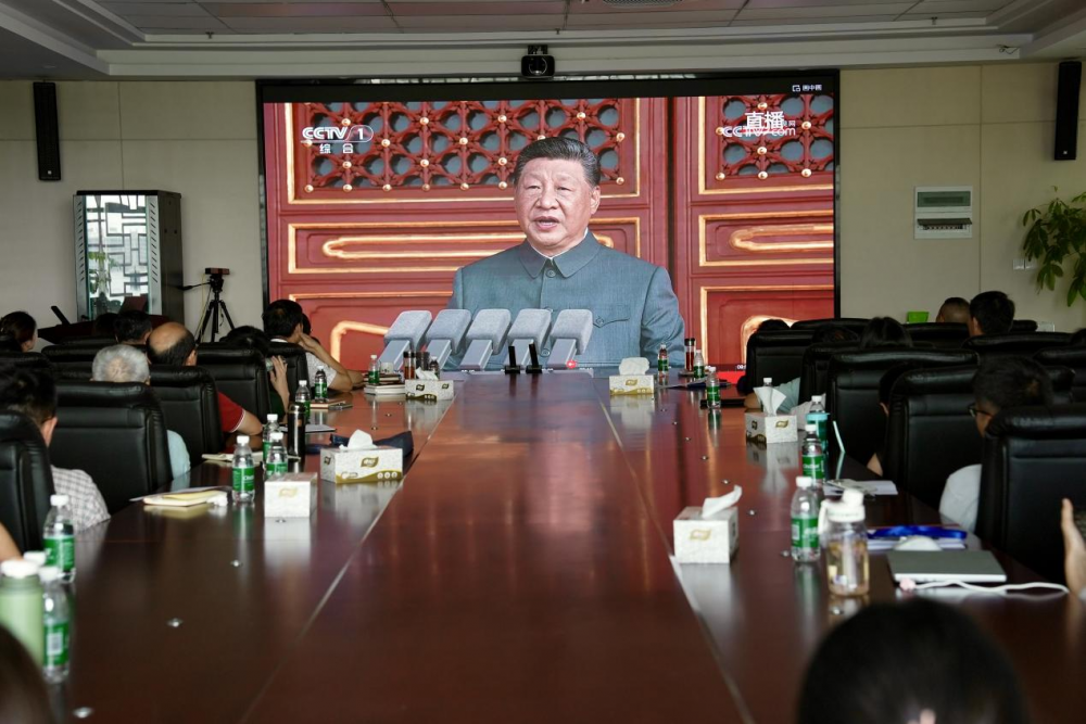 9月3日上午,学校董事会、校委会全体领导、党委委员、中层干部及教研室主任、教师代表齐聚一堂,共同观看纪念中国人民抗日战争暨世界反法西斯战争胜利80周年阅兵直播。