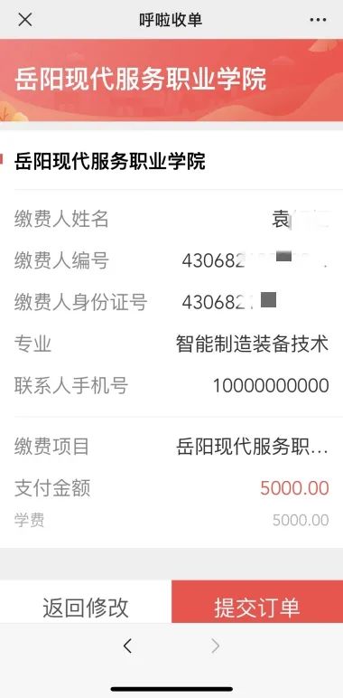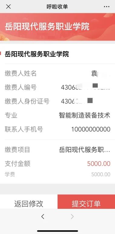 5、提交订单、缴费