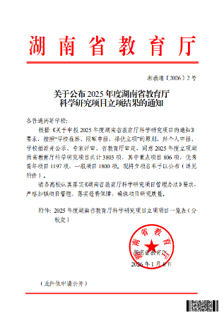 关于申报 2025年度湖南省教育厅科学研究项目的通知各部门、教职工:2025年度湖南省教育厅科学研究项目申报工作已启动,现将申报2025年度湖南省教育厅科学研究项目的有关事项通知如下。一、申报类别和范围1.重点项目:支持高校教师和科研人员,围...