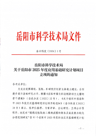 岳阳市科学技术局关于岳阳市2025年度应用基础研究计划项目立项的通知.pdf
