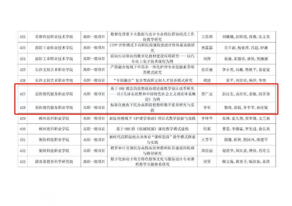 关于2023年湖南省职业院校教育教学改革研究项目拟立项名单的公示