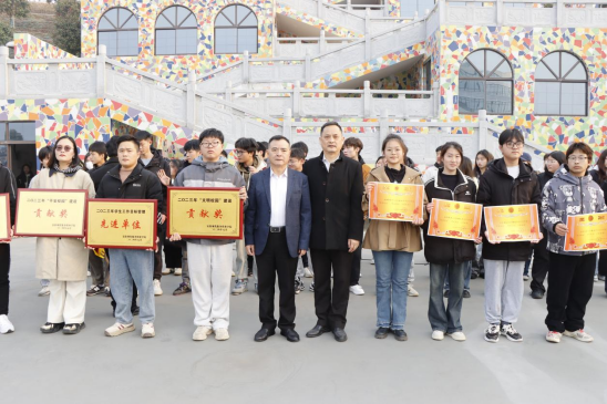 学生处处长戴亚平宣读表彰决定,为安全工作作出突出贡献的优秀集体、优秀寝室、优秀楼层长、优秀寝室长颁奖。