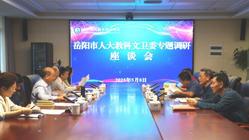 聚焦职教发展市人大教科文卫委领导来我校调研5月8日上午,岳阳市人大常委会委员、教科文卫委主任委员刘利文率调研组一行,深入我校开展专题调研,聚焦高校优化布局、专业设置调整、产教融合发展等重点内容,为推动全市职业教育高质量发展把脉问诊...