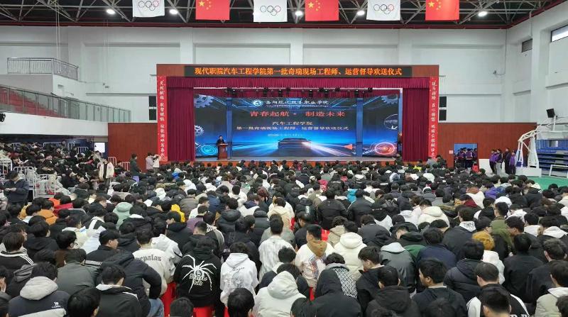 3月17日下午,我校体育馆内气氛庄重而热烈,汽车工程学院24级首批奇瑞现场工程师出征欢送仪式在此隆重举行。校长张建教授,副校长万忠保副教授、李芬、张莉,工会主席赵荣辉等领导,各职能部门负责人及汽车工程学院全体师生齐聚一堂,共同欢送12...