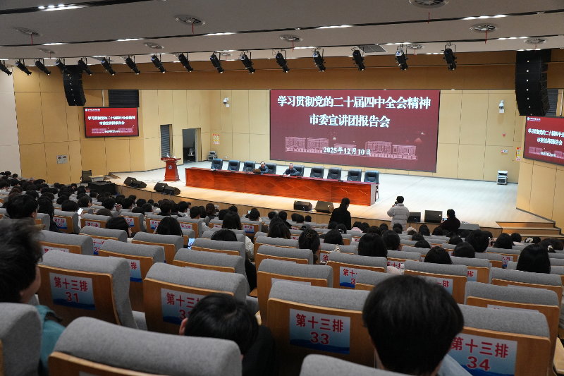 为推动党的二十届四中全会精神在校园落地生根,12月10日下午,学校党委举行专题报告会,董事会、党委会和校委会领导、全体党员、入党积极分子及师生代表共500人现场参会。报告会由党委委员、组织人事处处长李军主持,市委宣讲团成员、学校马克思...