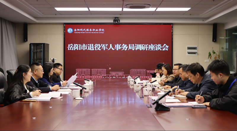 11月7日下午,岳阳市退役军人事务局党组书记、局长李力之和党组成员、副局长余晓霞带领局相关科室及岳阳人才集团负责人,到我校开展退役军人就业创业工作专题调研。学校董事长刘向葵,党委副书记、常务副校长张文兵和副校长李芬等参加调研。李力...