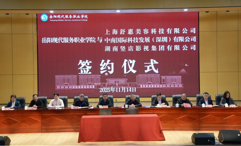 11月14日,我校与上海舒惠美容科技有限公司、中南国际科技发展(深圳)有限公司、湖南竖店影视集团有限公司校企合作暨共建产业学院签约仪式在学校会议中心成功举行。四方代表共同签署合作协议,标志着我校在深化产教融合、协同育人方面迈出坚实一...