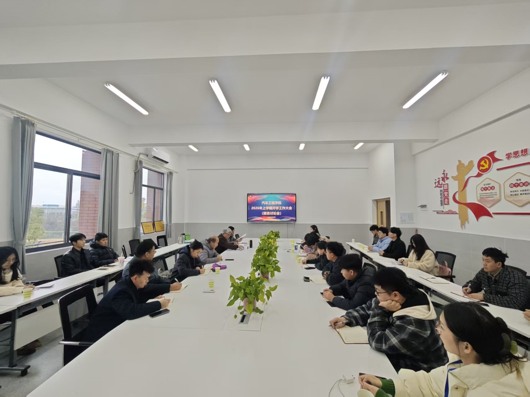春回大地,万象更新。2月28日下午四点半,汽车工程学院在笃行楼208会议室隆重召开了2026年第一次全体教职工会议。学院领导班子成员及全体教职工参加会议。会议由学院副院长吴敏主持。会议伊始,李锋院长首先代表学院党政领导班子向全院教职员工致...