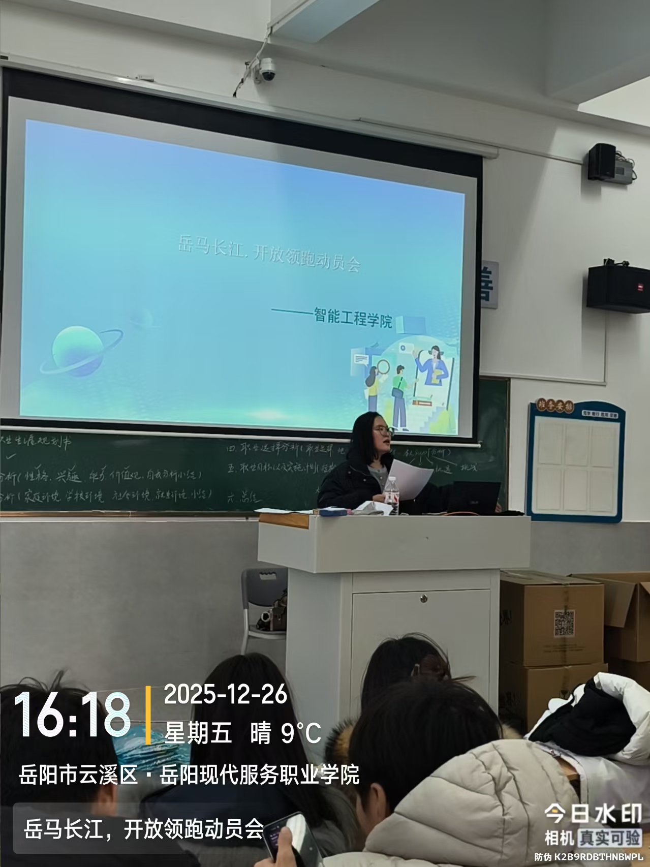 12 月 26 日,智能工程学院为即将出征 “康力电梯・2025 岳马长江 开放领跑・企业家精英赛” 的学子召开赛前动员会。会上,学院老师详细解读了赛事竞赛规程,重点强调了检录时间、集结分区、号码布佩戴、关门时间等关键要求,叮嘱同学们严格遵守...