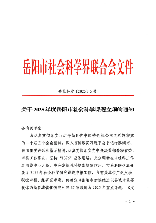 附件:岳社科发〔2025〕5号 2025年度岳阳市社会科学课题立项通知.pdf